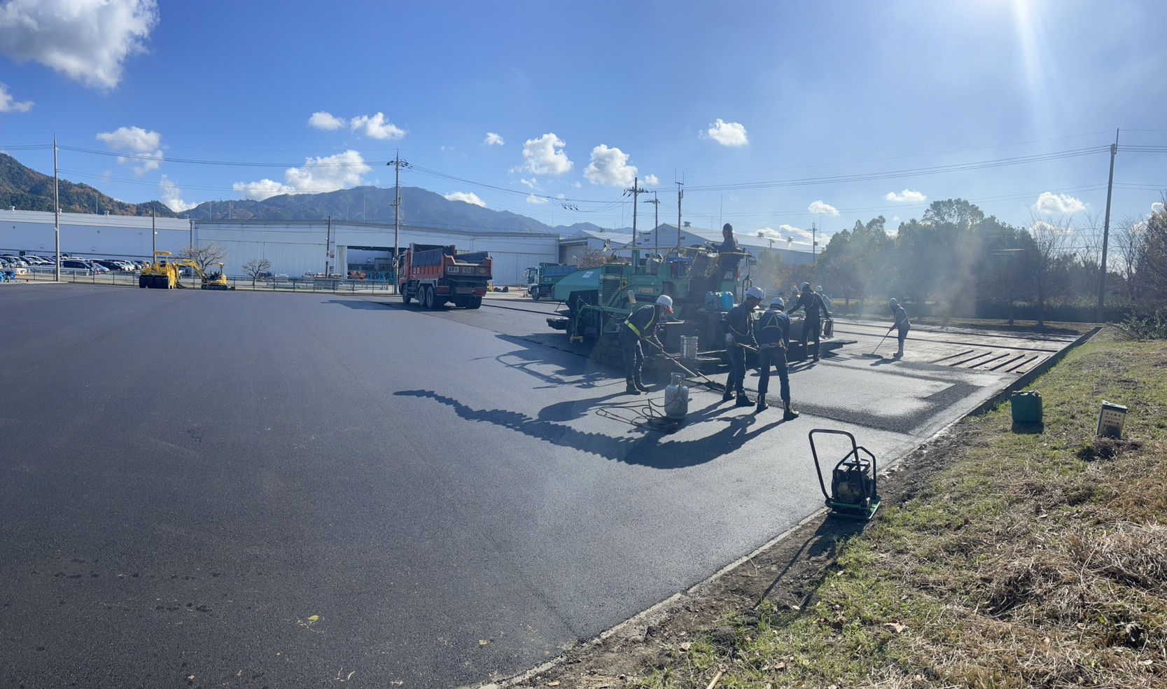 滋賀県愛荘町の某工場にて大型駐車場の舗装工事を行ないました。